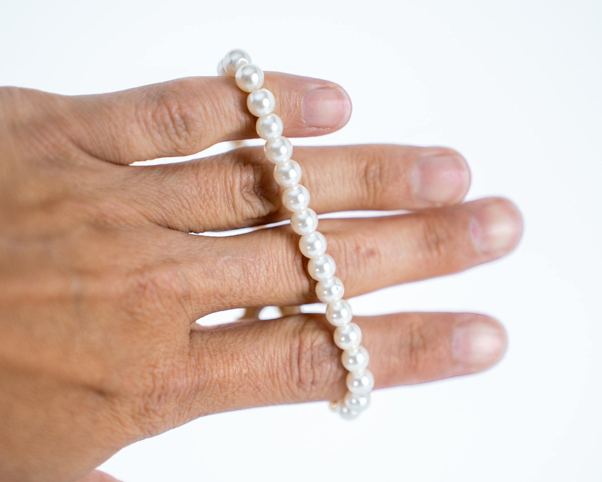 Beads: High-quality glass faux pearls with a traditional white pearl finish