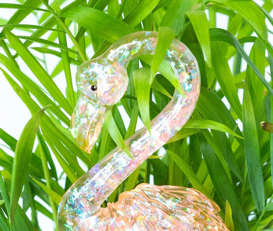 Flamingo Figurine Plant Stick, Handmade Resin Flamingo, Pink Ice Translucent, 2D Flamingo Plant Friend, Plant Pal, Tropical Decor
